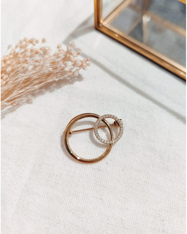 Broche double cercle strass doré