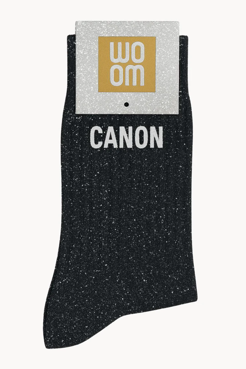 Chaussettes à Paillettes à Message “Canon” – Noir