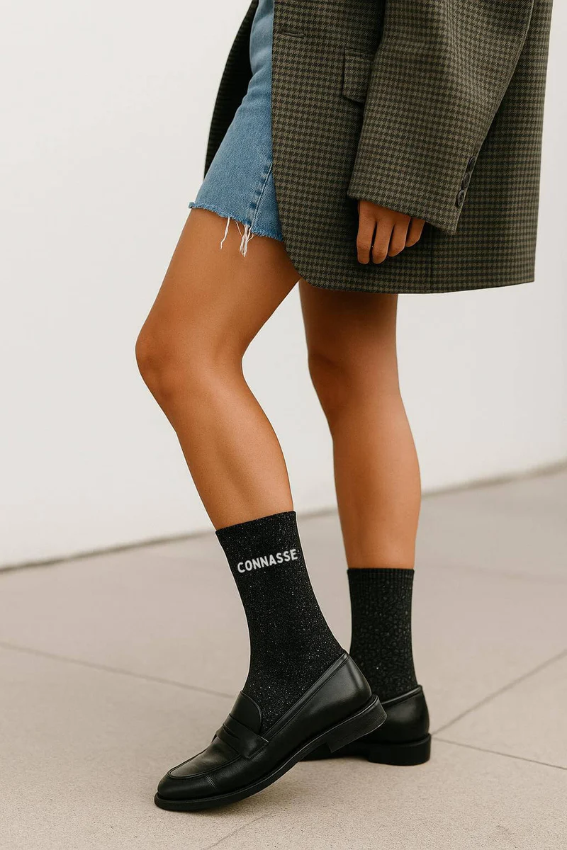 Chaussettes à Paillettes à Message “Connasse” – Noir