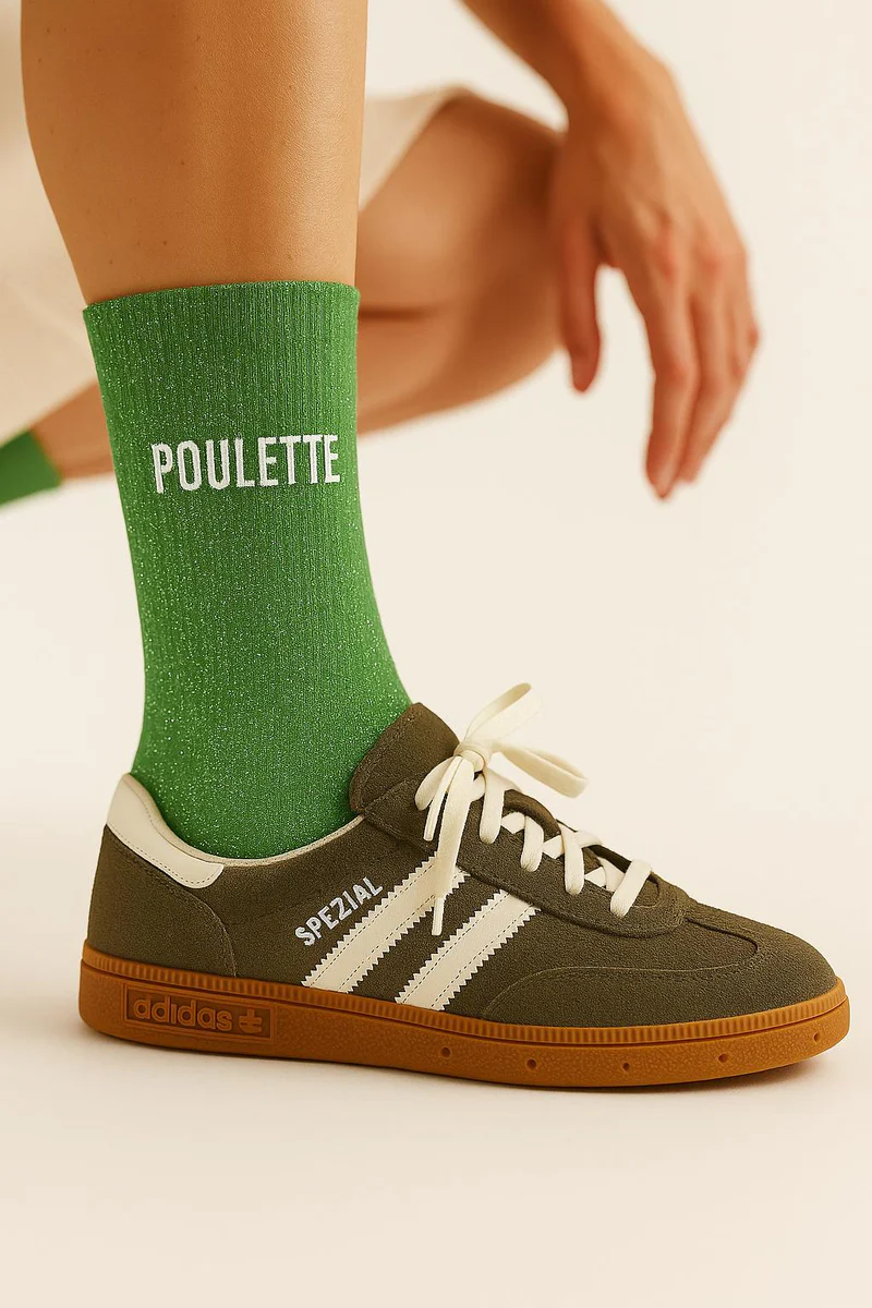 Chaussettes à Paillettes à Message “Poulette” – Vert Amande