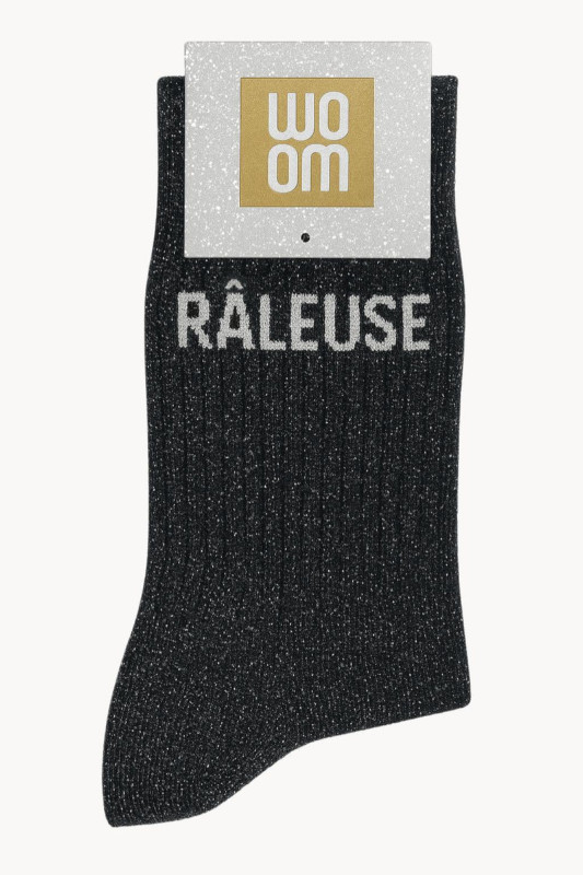 Chaussettes à Paillettes à Message “Râleuse” – Noir