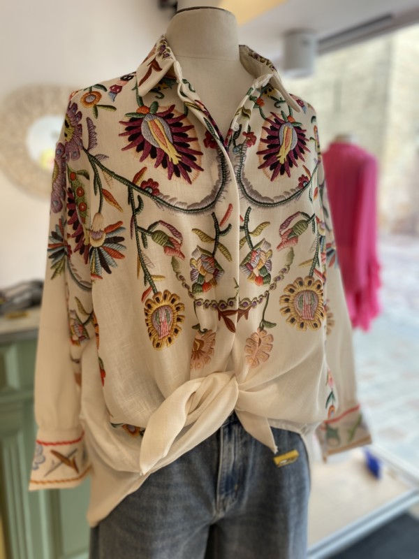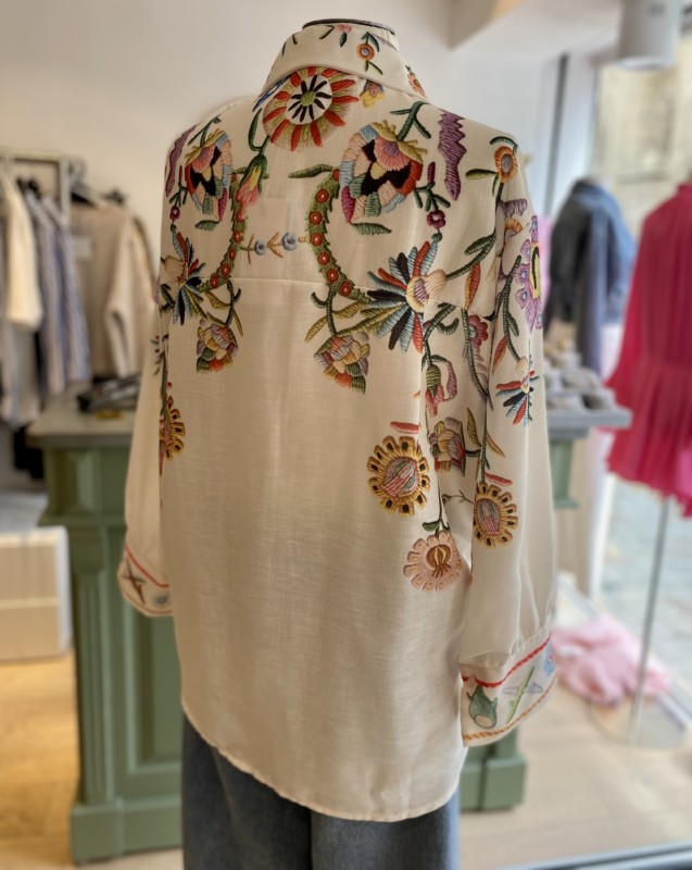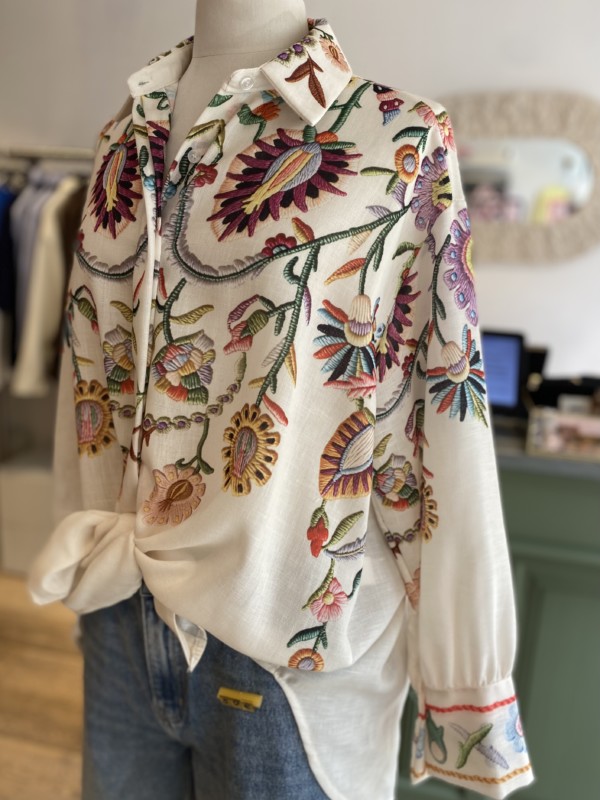 Une chemise qui fait immédiatement son effet. Ses imprimés à fleurs sur les épaules et les manches apportent LA touche de couleur parfaite !
