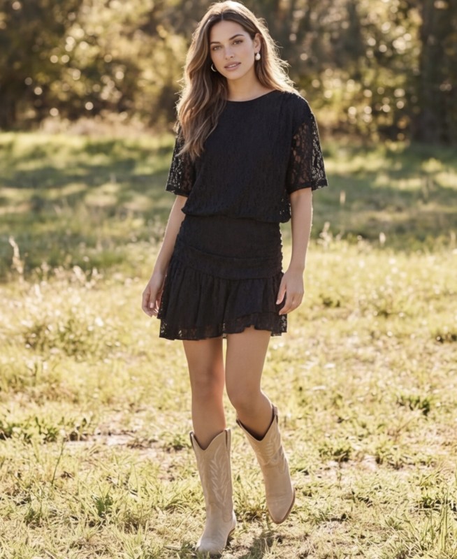 Combi-short noir en dentelle,