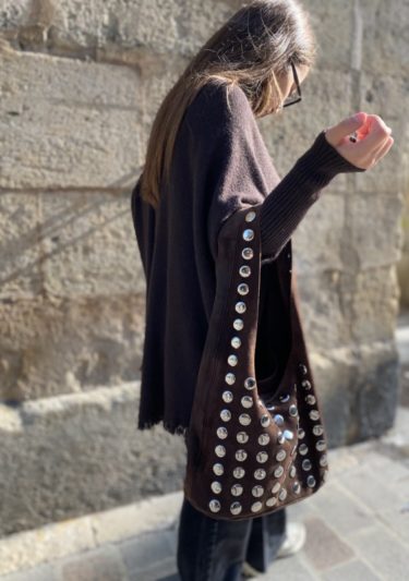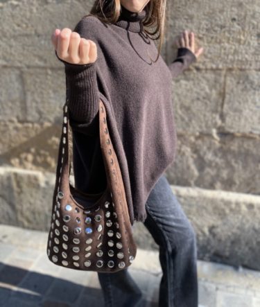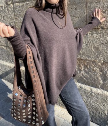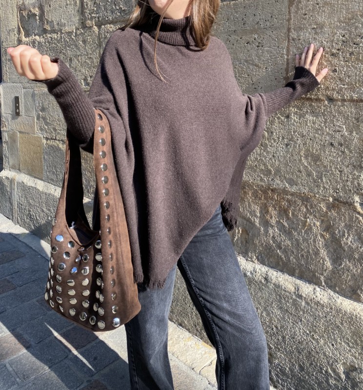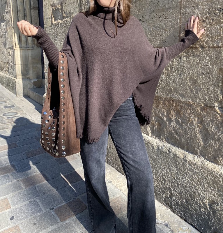 Pull poncho col roulé chocolat
