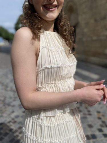 La Jupe est longue et fluide,
