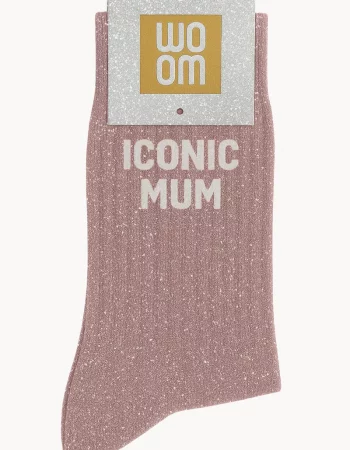 Chaussettes à Paillettes à Message “Iconic Mum” – Rose Gold
