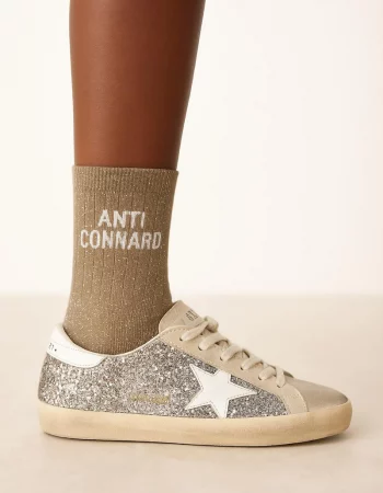 Chaussettes à Paillettes à Message “Anti-Connard” – Beige