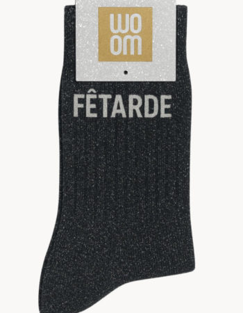 Chaussettes à Paillettes à Message “Fêtarde” – Noir