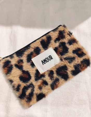 Pochette moumoute «Amour» léopard
