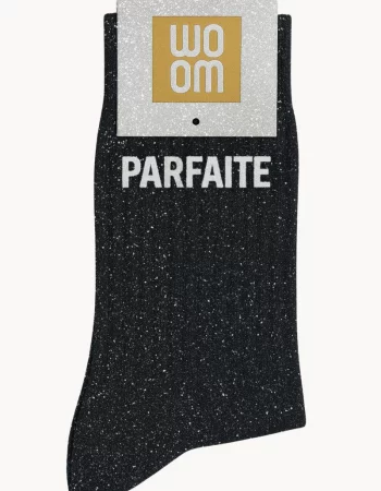Chaussettes à Paillettes à Message “Parfaite” – Noir