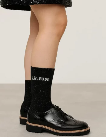 Chaussettes à Paillettes à Message “Râleuse” – Noir