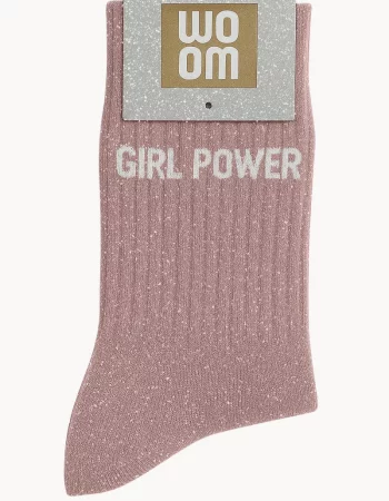 Chaussettes à Paillettes à Message “Girl Power” – Rose Gold