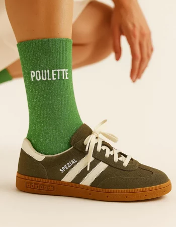 Chaussettes à Paillettes à Message “Poulette” – Vert Amande