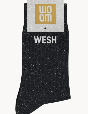 Chaussettes à Paillettes à Message “Wesh” – Noir
