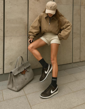 Chaussettes à Paillettes à Message “Bichette” – Beige