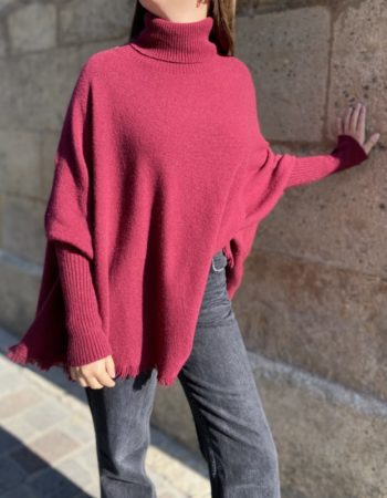 Pull poncho col roulé bordeaux