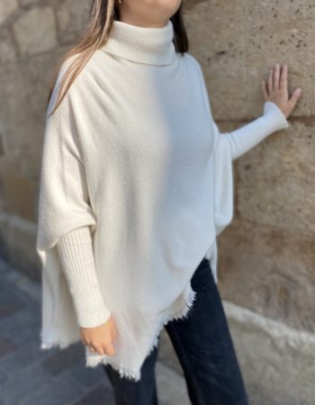 Pull poncho col roulé blanc