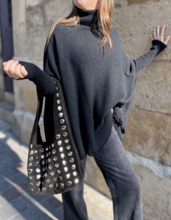 Pull poncho col roulé noir